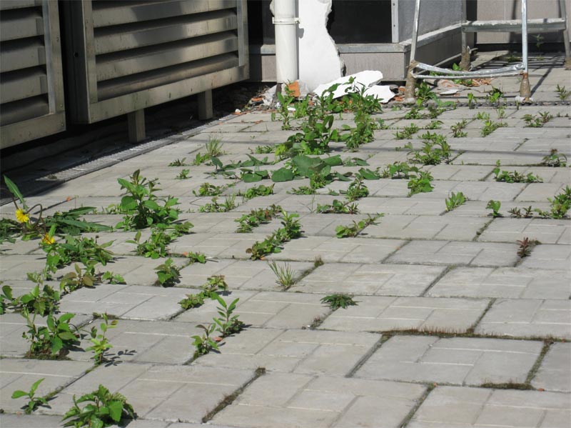 Весной этого года к нам обратился Клиент. Основная жалоба звучала, как «…донимают комары с кровли…». Выяснилось, что над квартирой клиента имеется эксплуатируемая кровля, которая не протекает, но цветет, дает сырость, от чего летом плодятся комары, мошкара и т.п. Документацию по кровле обнаружить не удалось. После того, как специалисты нашей компании провели осмотр и частичное вскрытие, был определен состав кровли:
